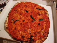 My search for good pizza outside NYC begins. Here is the "Oliver's" pizza I got at Todd English's Fig's in Beacon Hill tonight. It was nice and thin, with a good chewy texture to the dough, nicely charred in spots from the wood burning oven.